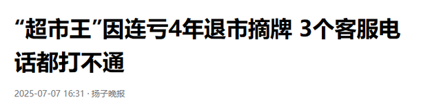 杨子晚报-2025-07-07-“超市王”因连亏4年退市摘牌 3个客服电话都打不通